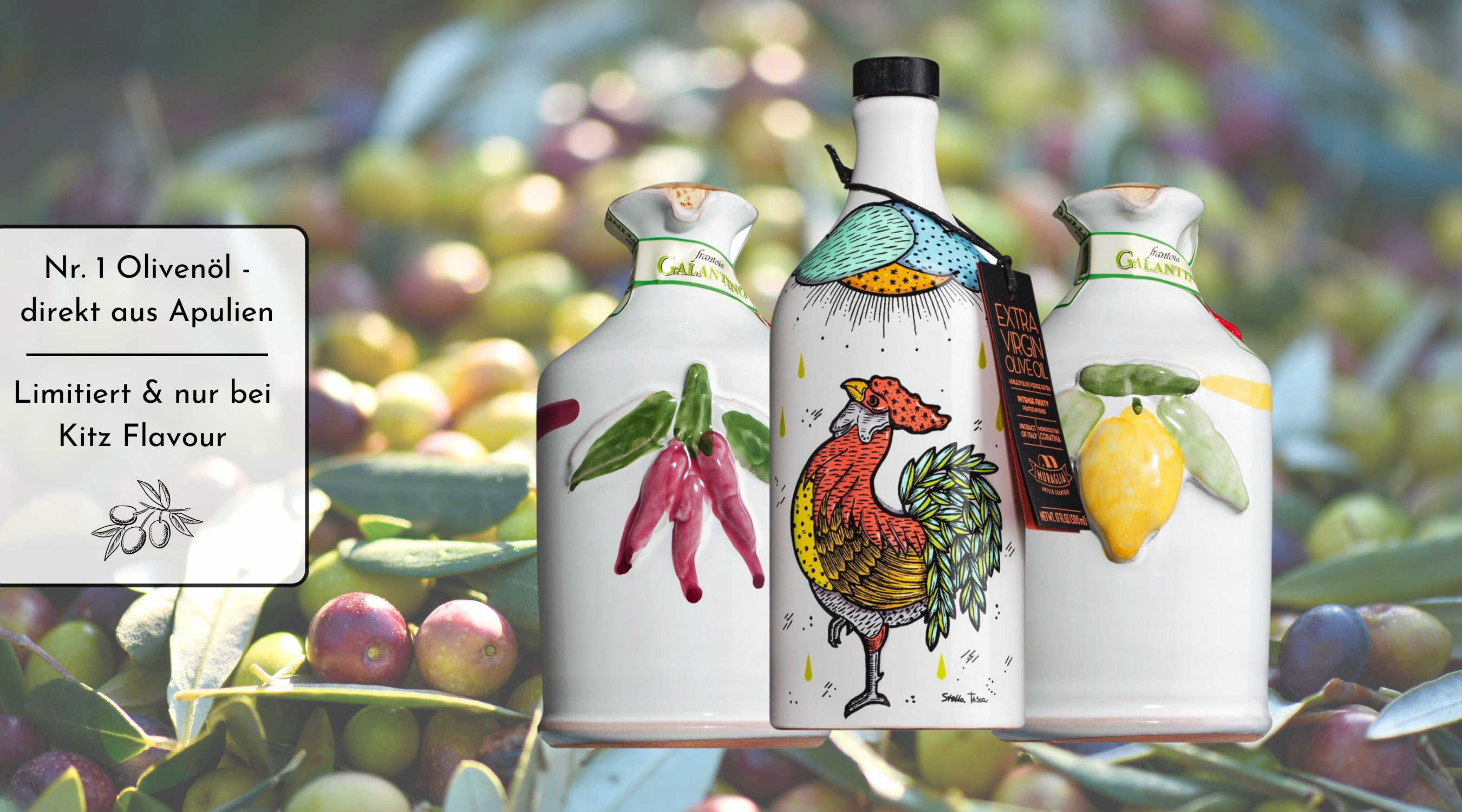 Preisgekröntes Olivenöl: Unser Olivenöl stammt aus familiengeführten Betrieben in Apulien, die seit Generationen die Kunst der Olivenölherstellung perfektioniert haben. Diese Öle wurden weltweit ausgezeichnet und als das beste Olivenöl der Welt anerkannt. Mit jedem Tropfen genießen Sie die Hingabe und das traditionelle Handwerk, das in jede Flasche einfließt. Die Krüge werden mit Hand bemalt und bringen Italien zu dir!
