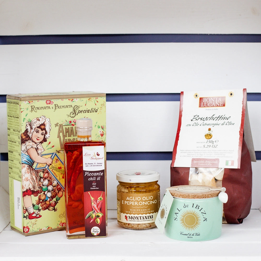 Entdecke die exquisite Welt der Feinkost mit unserem FEINSCHMECKER Paket! Eine sorgfältige Auswahl an hochwertigen Produkten, die deine kulinarischen Kreationen auf das nächste Level heben. Von klassischen italienischen Amaretti bis hin zu scharfem Chili-Öl und feinem Fleur de Sel – dieses Paket bietet alles, was das Gourmet-Herz begehrt. Ideal für den Snack zwischendurch.
