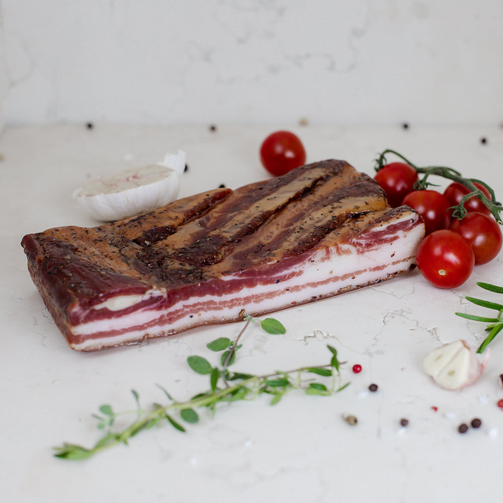Intensiv, würzig, herzhaft – das sind die charakteristischen Merkmale des Original Kitzbüheler Bauchspecks. Tauche ein in den Geschmack von Luxus und entdecke die kulinarische Vielfalt der Region Kitzbühel in jedem Bissen. Mit sorgfältiger Handwerkskunst und Leidenschaft wird dieser Bauchspeck extra für dich zugeschnitten, um ein unvergleichliches Geschmackserlebnis zu bieten.