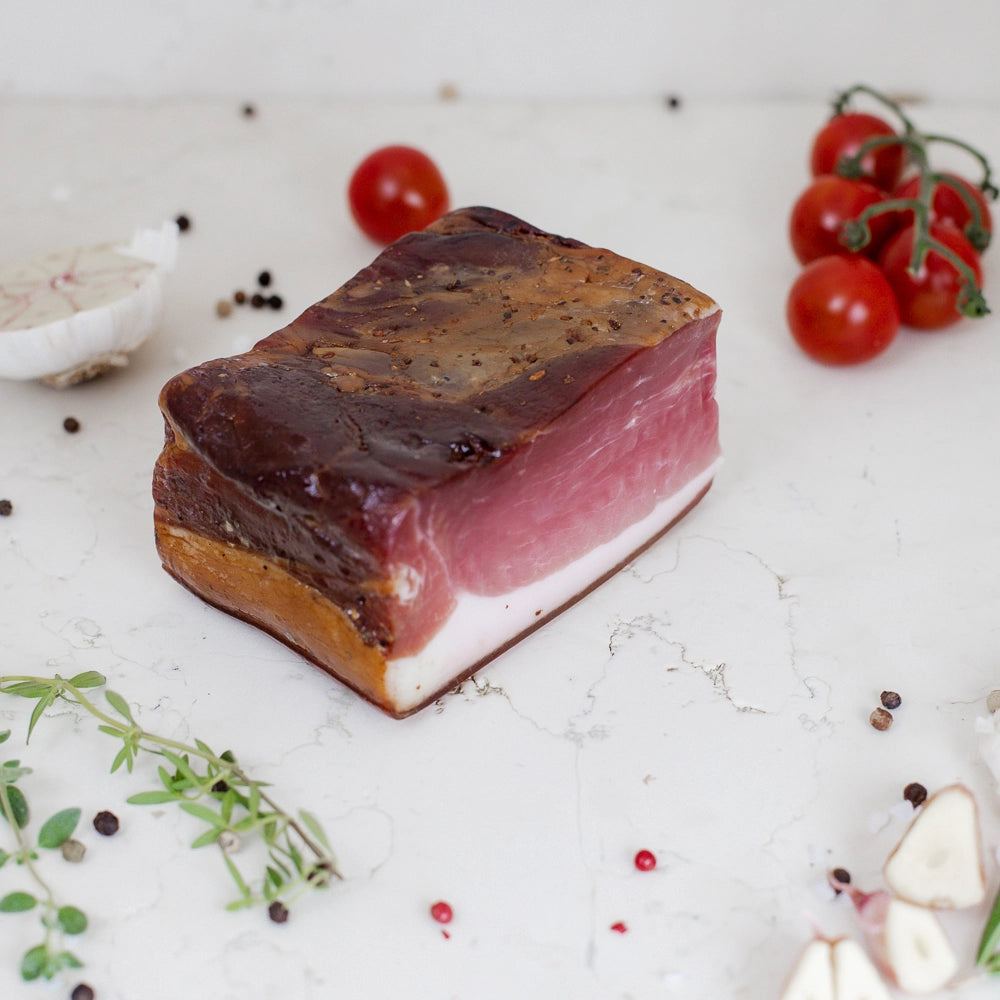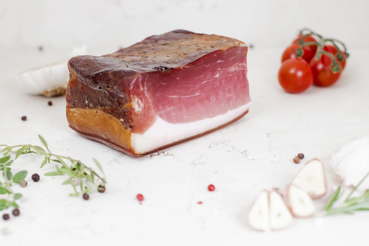 Erlebe den unvergleichlichen Geschmack des Original Kitzbüheler Schinkenspecks! Dieser würzige, herzhafte und geräucherte Genuss entführt in die kulinarische Vielfalt der Region Kitzbühel mit jedem Bissen. Sorgfältige Handwerkskunst und Leidenschaft prägen jedes Stück dieses extra für dich zugeschnittenen Schinkenspecks und versprechen ein intensives Aroma.