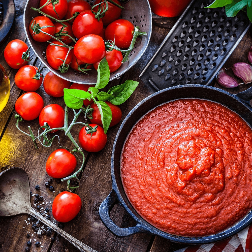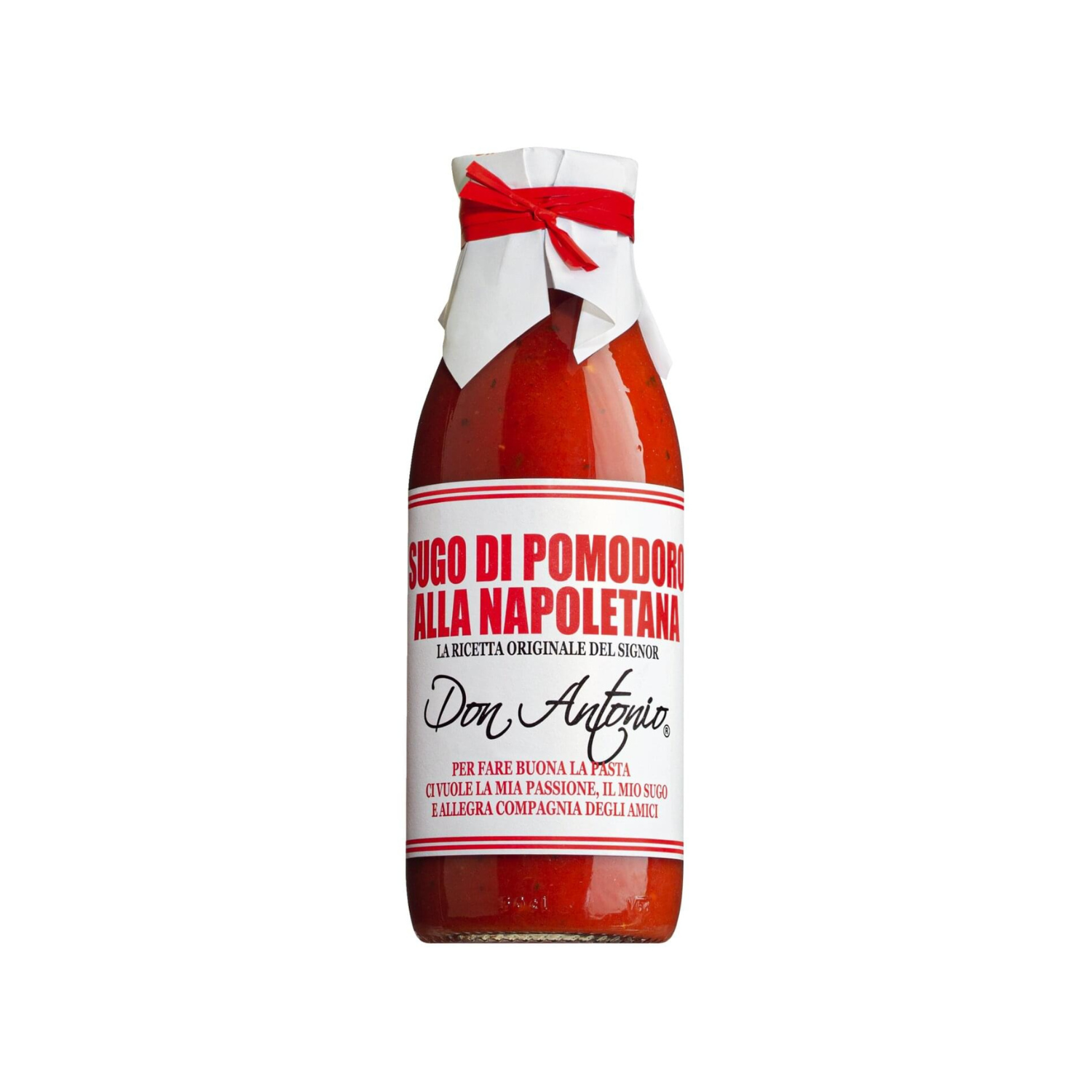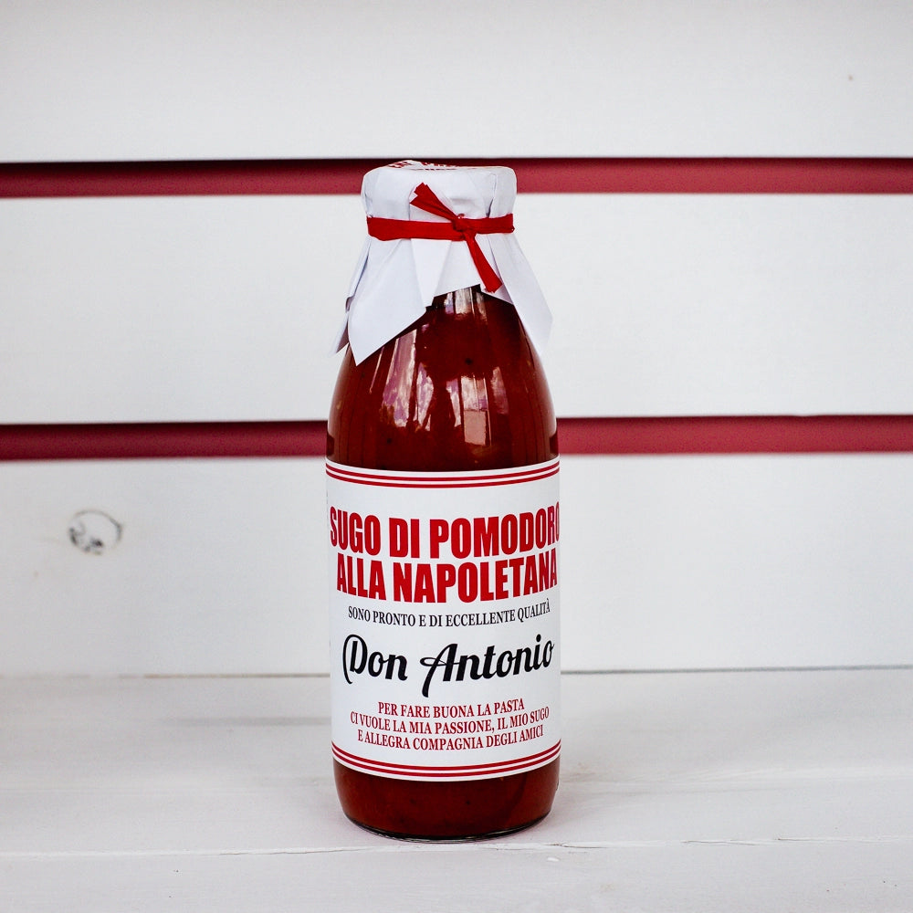 Die Neapoletaner lieben es gemüsig und gut gewürzt. Deshalb sind in diesem Sugo neben den vollreifen Tomaten Don Antonios viele Zwiebeln, Knoblauch, Basilikum Tomatenstücke und schwarzer Pfeffer. Pommarola nennt man sie in Neapel und gibt sie über Spaghetti.
